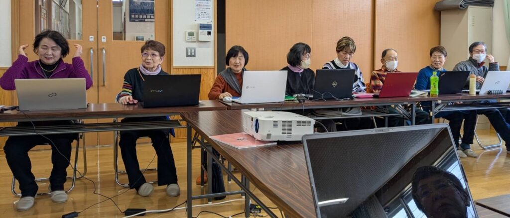 北の国は大雪でも熊本は何とか冷たい風を浴びながらも19名の参加(内♂4)でした。 パソコン19台を持ち込んでの皆様の熱気にコミセンは暖房を使わなくて済んだほどです。